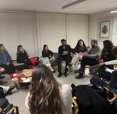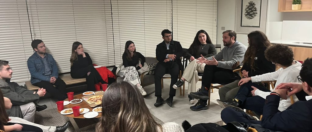 Un espacio distinto para conversar: en agosto 2024 realizamos un nuevo Encuentro “Off the Record”, donde estudiantes e invitados especiales compartieron ideas en un ambiente relajado, pizza de por medio. La actividad buscó abrir un diálogo sincero sobre temas de relevancia nacional, acercando a los jóvenes al debate público desde la confianza y el respeto mutuo.